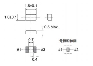 西鐵城晶振,CM1610H晶振,1610mm晶振,頻率范圍:32.768KHZ,厚度1.6 × 1.0 × 0.5mm,應用于:通信設備.