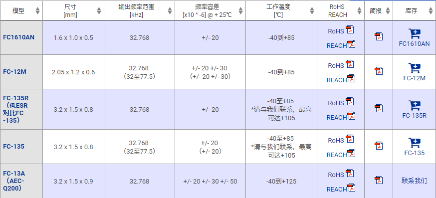 | 晶振型號編碼 | 尺寸(長寬高) | 型號 | 頻率 | 負載電容 | 頻率偏差 | 工作溫度 | ESR阻值 |