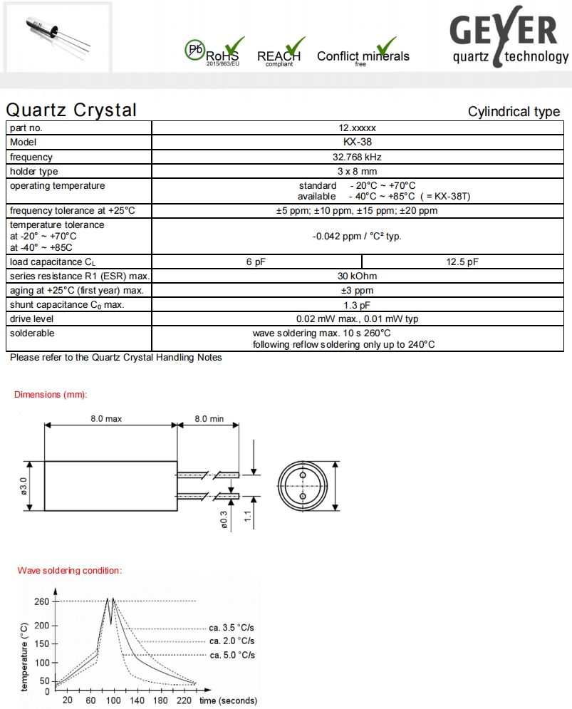 12.80104|32.768KHz|6pF|格耶音叉晶體,格耶晶振,歐美進(jìn)口晶振,KX-38音叉晶體,無(wú)源晶振,12.80104晶振,圓柱插件晶振,石英晶體諧振器,3.0×8.0mm晶振,頻率32.768KHz,負(fù)載6pF,頻率容差20ppm,工作溫度-20~70°C,無(wú)鉛環(huán)保晶振,低老化晶振,高品質(zhì)晶振,移動(dòng)通信晶振,物聯(lián)網(wǎng)晶振,數(shù)字電表晶振,數(shù)碼相機(jī)晶振.