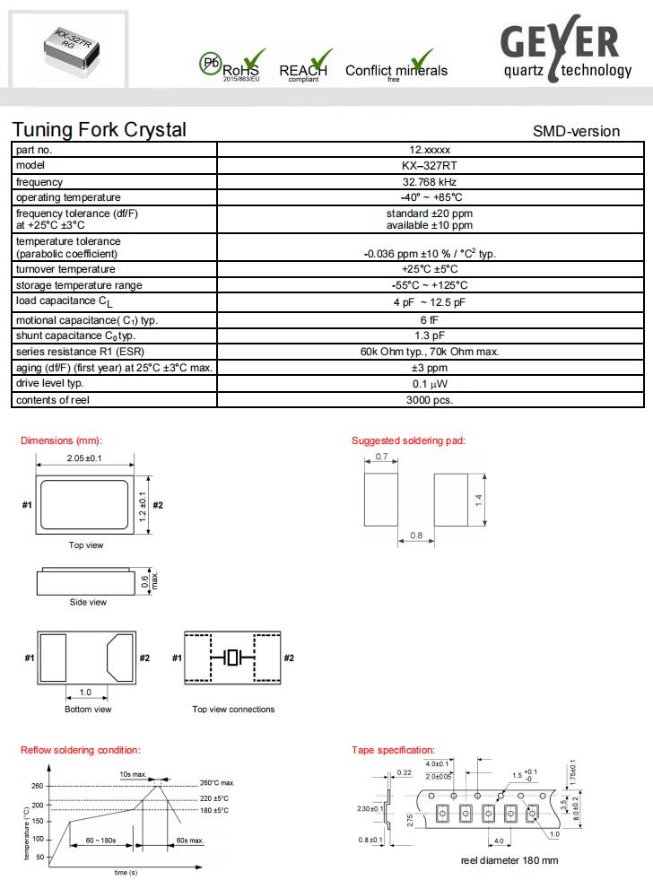 12.87161|32.768KHz|12.5pF|Geyer高精度晶振,Geyer晶振,KX-327RT進口晶振,音叉晶體,12.87161晶振,無源晶振,2012mm晶振,石英晶體諧振器,二腳貼片晶振,SMD晶振,頻率32.768KHz,負載12.5pF,頻率容差5ppm,工作溫度-40~85°C,高精度晶振,高品質晶振,低老化晶振,消費電子產品晶振,數碼相機晶振,隨身聽晶振,智能家居晶振.