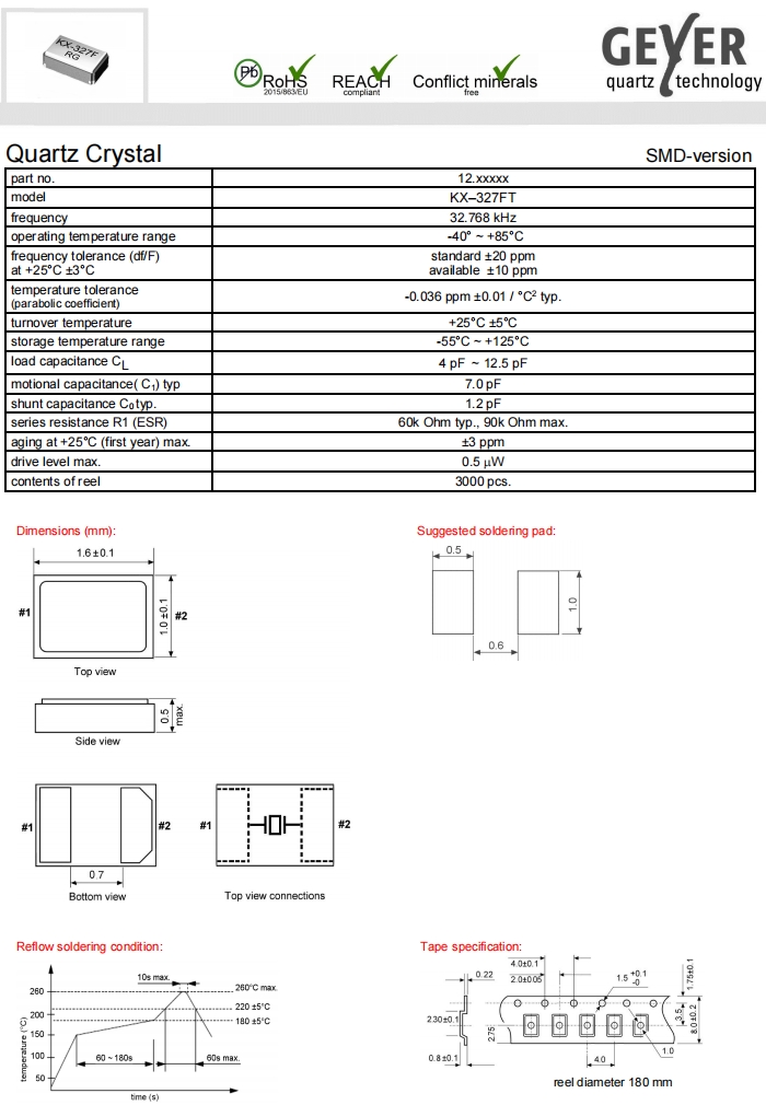 12.87174|32.768KHz|7.0pF|歐美格耶晶振,歐美進口晶振,格耶晶振,KX-327FT無源晶振,音叉晶體,12.87174晶振,晶體諧振器,石英貼片晶振,1610mm晶振,二腳晶振,SMD晶振,頻率32.768KHz,負載7.0pF,頻率容差20ppm,工作溫度-40~85°C,低老化晶振,高穩定性晶振,抗沖擊晶振,測試與測量設備晶振,移動應用晶振,消費電子產品晶振,攝像機晶振.