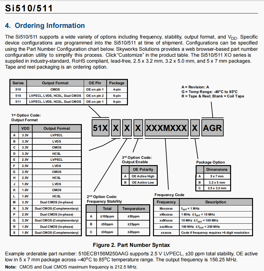 | 510ABA212M500AAG | Skyworks晶振 | Si510 | XO | 212.5 MHz | LVPECL | 3.3V |