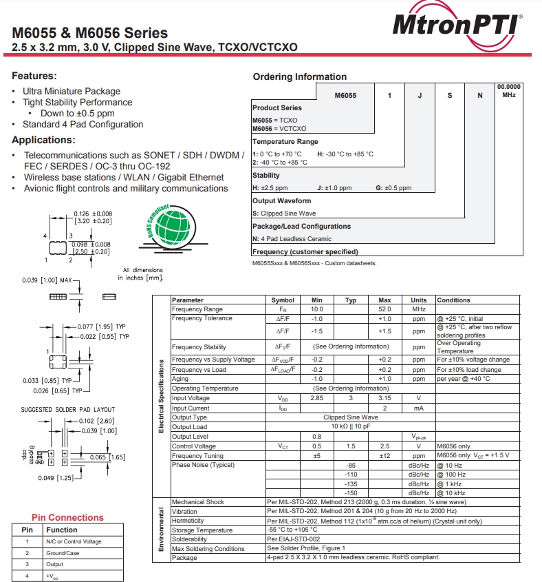 M6055S026 20.000000|M6055,M6056|MTRONPTI晶振