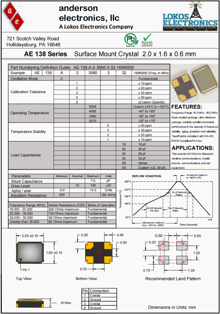 AE-138-A-1-4085-5-18-26M0000|AE138|26MHz|Anderson