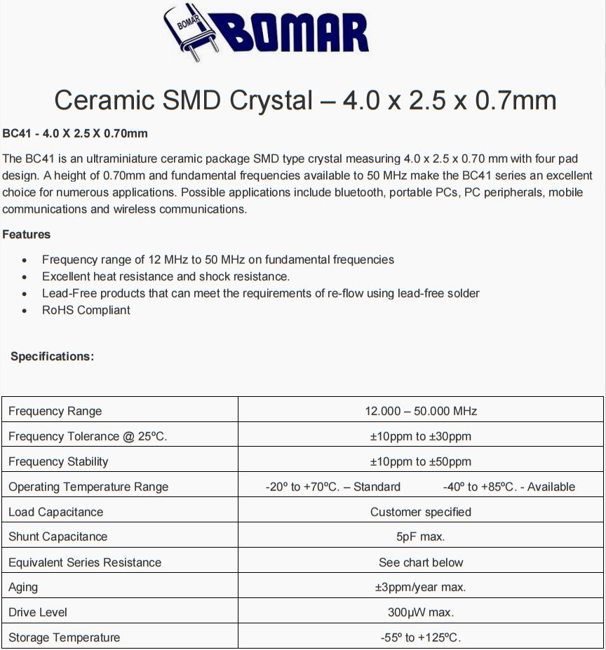 Bomar晶振,6G室外基站晶振,BC41小體積晶振
