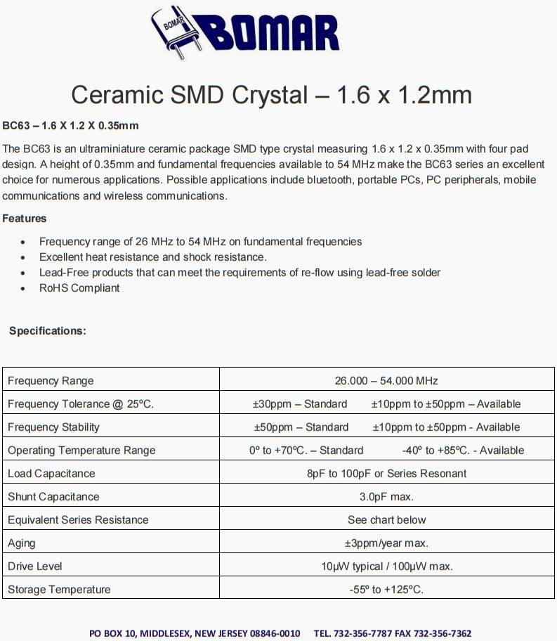 Bomar晶振,BC63進(jìn)口晶振,6G接收器晶振