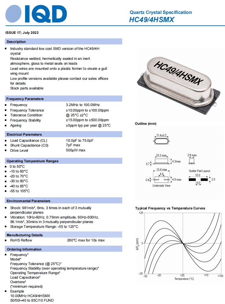 LFXTAL020423REEL|IQD Crystal,歐美進口晶振,IQD晶振,HC49/4HSMX無源晶振,LFXTAL020423REEL晶振,SMD晶體,HC-49S貼片晶振,石英晶體諧振器,頻率8MHz,負載18pF,頻率容差30ppm,工作溫度-20~70°C,尺寸11.4×4.9mm,高可靠性晶振,低電阻晶振,低老化晶振,家用電視機頂盒晶振,智能手表晶振,電子體重秤晶振,家用電器晶振.