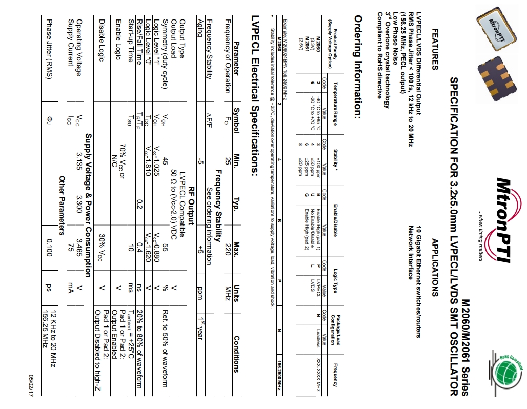 | MTRONPTI晶振規格 | 單位 | M2060晶振 | 石英晶振基本條件 |