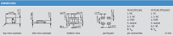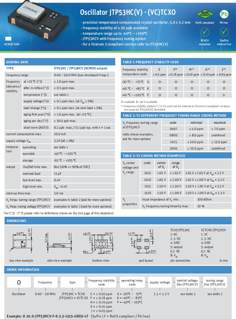 | VC frequ. tuning voltage JTP53HCV | examples in table 3 (ask for more options) | |
