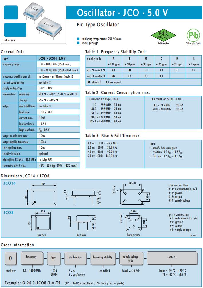 O 50.0-JCO8-3-B-T1-LF|Oscillator Crystal規格表