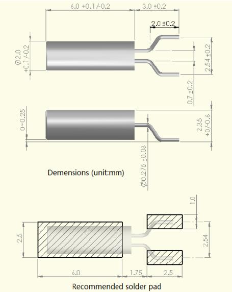 WXFSR-32K768-6|32.768KHz|6pF|Fortiming貼片圓柱尺寸圖