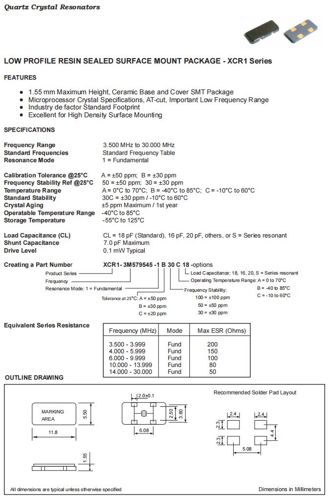 XCR1-3M579545-1B30C16|3.579545MHz|16pF|Fortiming晶體規(guī)格表