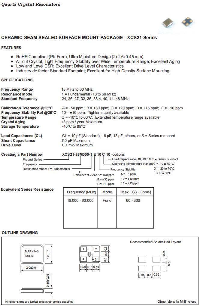 XCS21-44M000-1E10D16|44MHz|16pF|富通無源晶振,歐美進口晶振,富通晶振,XCS21無源晶振,石英諧振器,XCS21-44M000-1E10D16晶振,2016mm晶振,SMD晶體,石英晶振,四腳貼片晶振,頻率44MHz,負載16pF,頻率容差10ppm,工作溫度-20~70°C,高穩定性晶振,低老化晶振,優異的驅動電平特性,便攜式設備晶振,智能手機晶振,平板電腦晶振,無線局域網晶振.