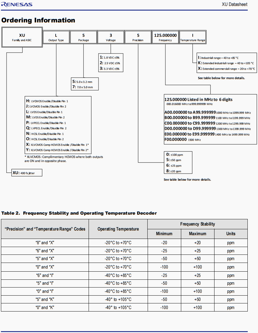 | XUH525125.000000I | Renesas晶振 | XU | 125 MHz | LVCMOS | 2.5V | ±50ppm |