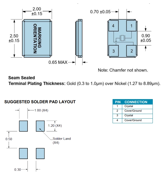• 晶振尺寸:2.5*2.0*0.5mm