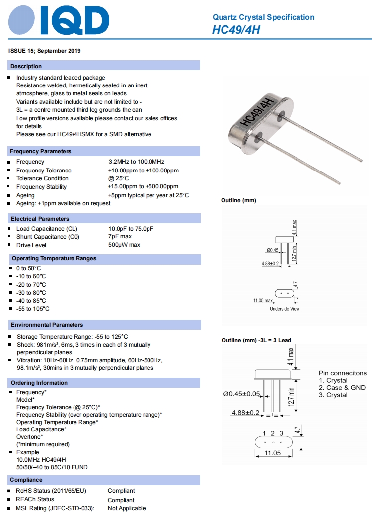 IQD Crystal|LFXTAL036075BULK,IQD晶振,HC49/4H無源晶振,LFXTAL036075BULK晶振,HC-49S插件晶振,石英晶體諧振器,頻率27.12MHz,負載10pF,頻率容差30ppm,工作溫度-10~60°C,尺寸11.05×4.7mm,低成本晶振,高性能晶振,無鉛環保晶振,數碼產品晶振,儲存卡晶振,電子鍵盤晶振,攝像機晶振.