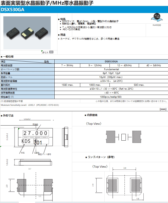 • 產品應用: 1C707600CC1B|DSX530GA|5032mm|7.600MHZ|10PF|30PPM,編碼1C707600CC1B,型號DSX530GA,尺寸5032mm,頻率范圍7.600MHZ,負載電容10PF,精度30PPM,石英晶體諧振器,具有高精度超小型的表面貼片型石英晶體振蕩器,最適用于移...