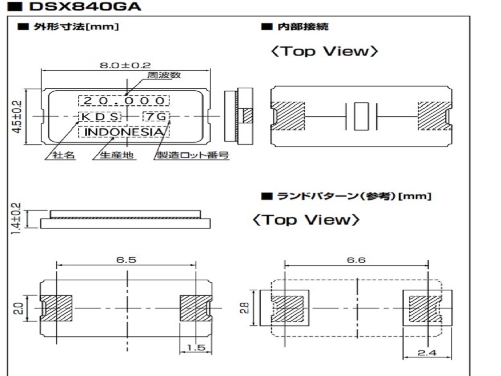 ●8045尺寸、厚度1.4mm的小型超薄SMD晶振(DSX840GA)