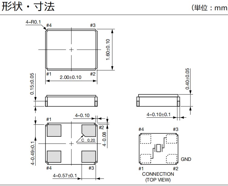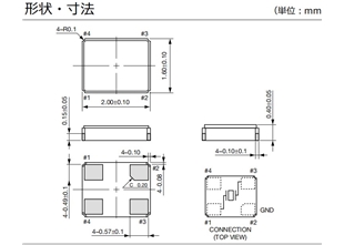 16MHZ/CX2016DB16000D0FLJCC/CX2016DB/-30~85℃/水晶振動子 尺寸圖