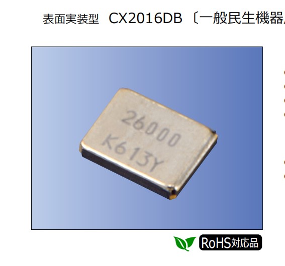 SMD晶體產品主要應用范圍:數字家電,無線設備,普通民用設備等領域.16MHZ/CX2016DB16000D0FLJCC/CX2016DB/-30~85℃/水晶振動子