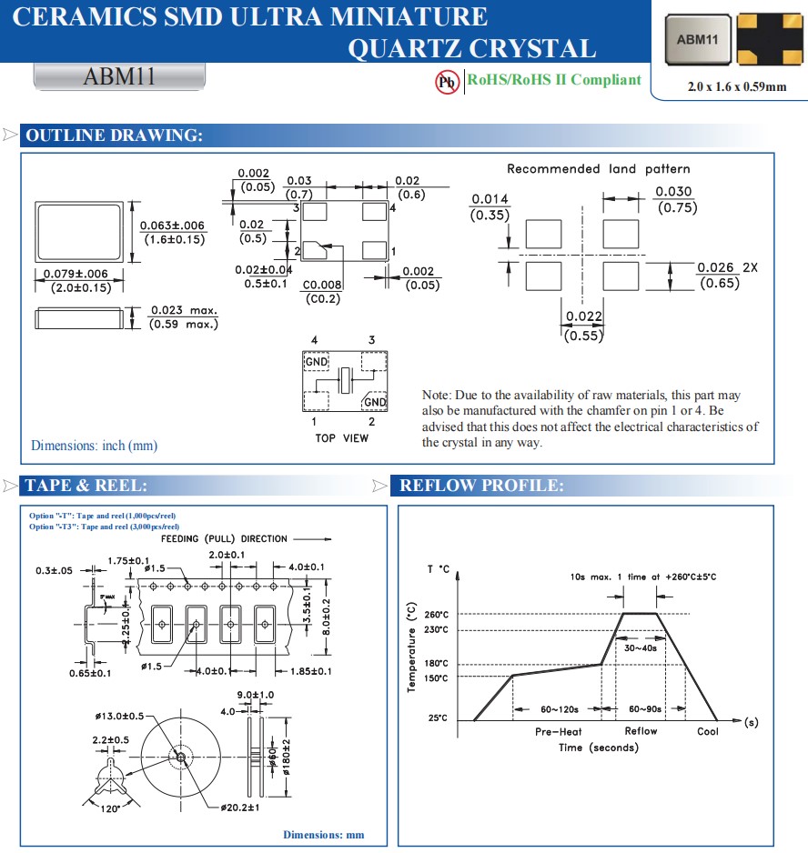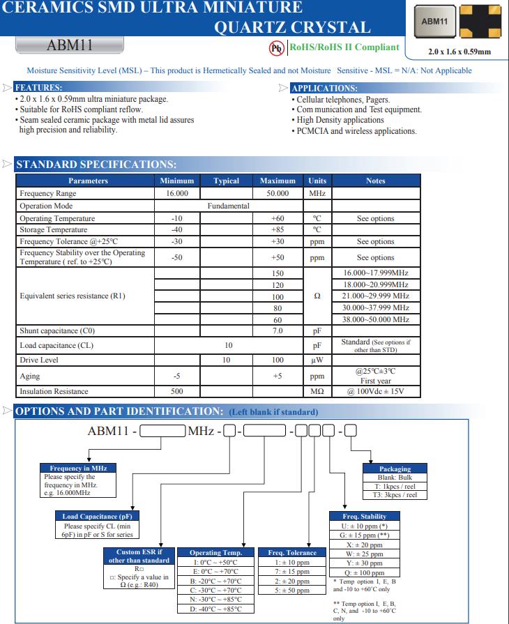 | ABM11-16.000MHZ-D2X-T3 | Abracon晶振 | ABM11 | MHz Crystal | 16MHz |