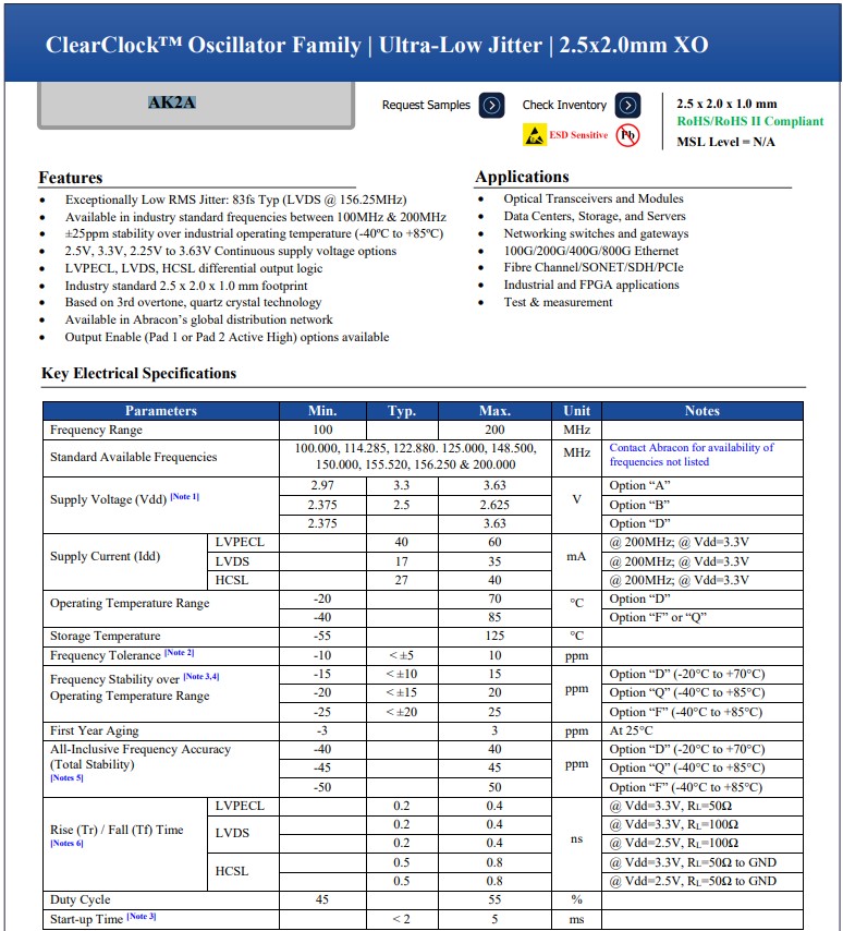 - [2023-06-21]低抖動振蕩器AK2APAF1-156.2500...