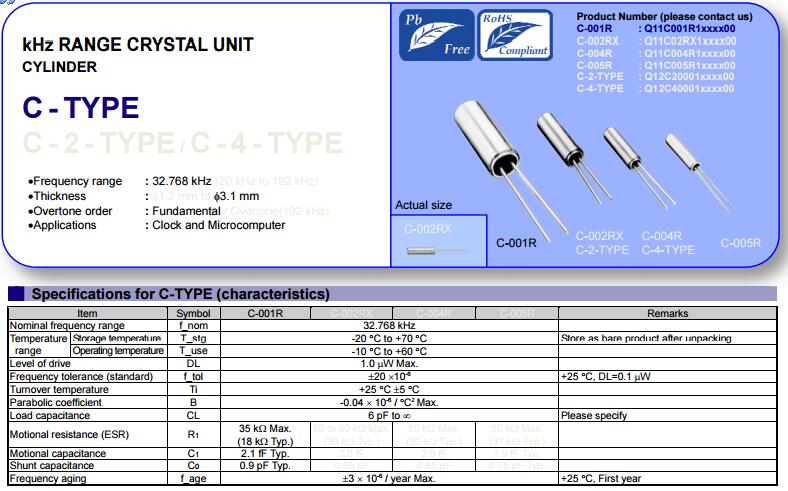 近日接到不少客戶來電說要愛普生的C-001R 32.768KHZ 12.5PF 20PPM的晶振,而且要的數量也挺多,也是比較急的.但市面上已經沒有這款晶振了,愛普生晶振官網也聲明了停產,客戶也有提到之前也有使用到愛普生的這款3*8mm尺寸的晶振,在這給大家提個醒,愛普生C-001R或C-TYPE這款32.768KHZ的晶振已經停產了,若要繼續使用的話可以找KDS的DT-38或者精工的VT-308代替使用.KDS的貨源充足,質量也穩定,建議大家使用日本進口KDS品牌的貨.下面為大家提供一下愛普生停產晶振C-001R的資料.