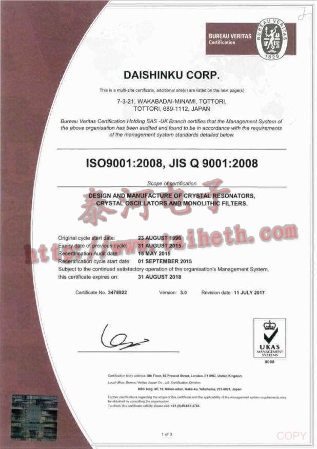 - [2019-08-14]臺(tái)灣希華晶體有限公司ISO9001認(rèn)...