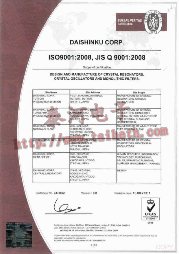 - [2023-06-21]臺(tái)灣加高晶振公司通過ISO 9001:...