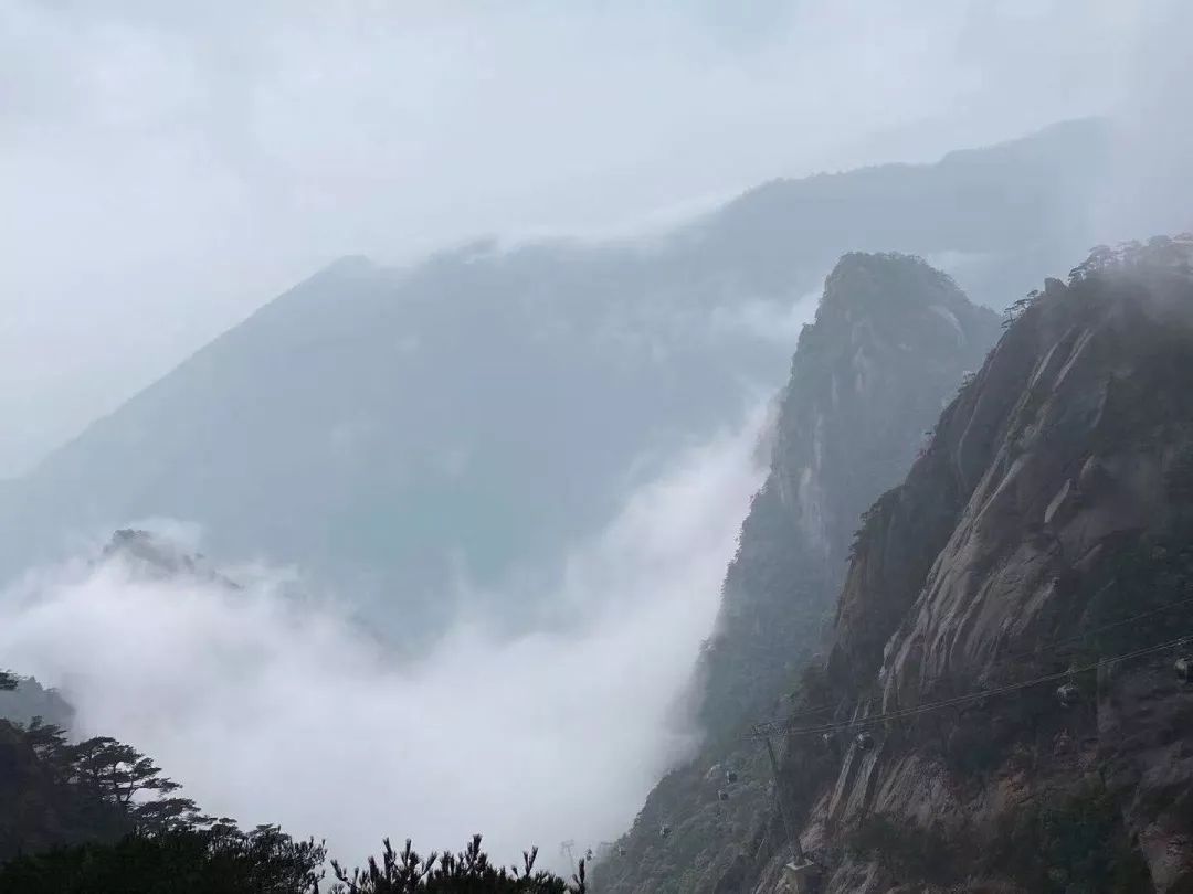 雨天黃山行別有一番樂趣,雨霧中的黃山尤為靜謐。