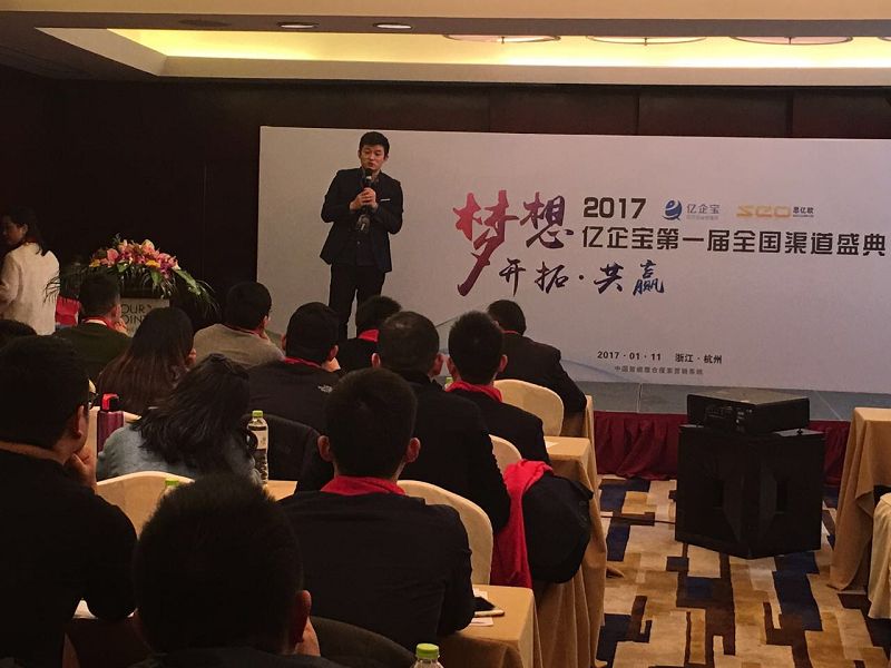2017年1月11日,思億歐新三板上市榮耀發(fā)布會暨億企寶第一屆渠道盛典在杭龍禧福朋喜來登大酒店盛大舉行。會議中,思億歐向社會各界榮耀發(fā)布了公司在新三板上市的喜訊,同時也隆重召開億企寶第一屆全國渠道盛典。