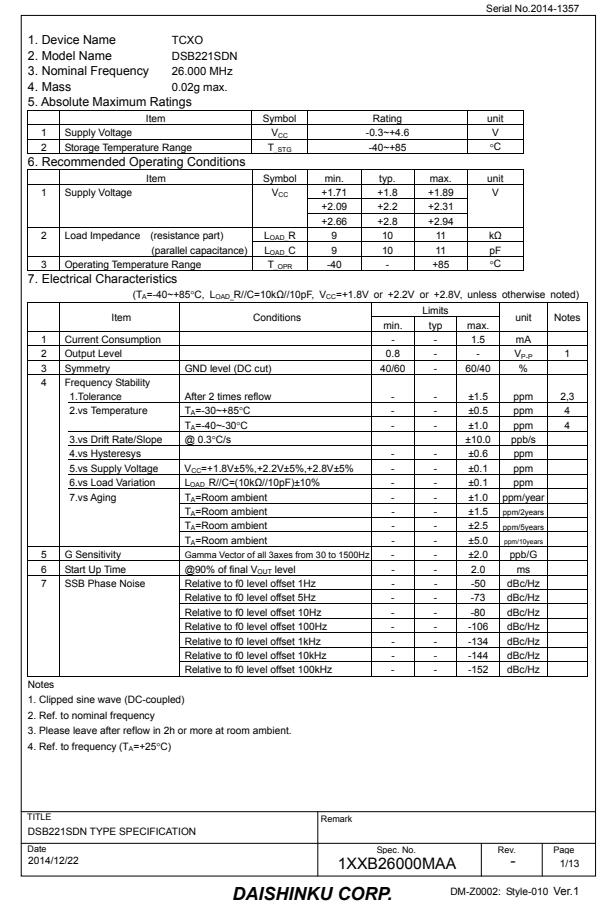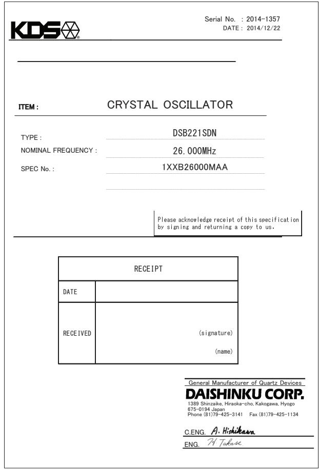 1XXB26000MAA|DSB221SDN晶振|KDS|全新原裝正品|數據手冊|