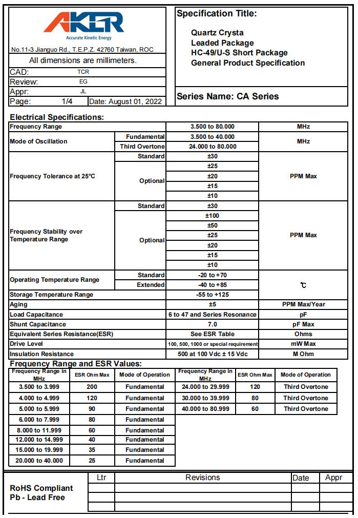 CA-32.000-20-2030-X-R|32MHz|20pF|AKER安基晶振規格表