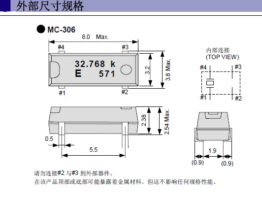 • 晶體產品可能會在某些條件下受到損壞。例如從桌上跌落或在貼裝過程中受到沖擊。如果產品已受過沖擊請勿使用。