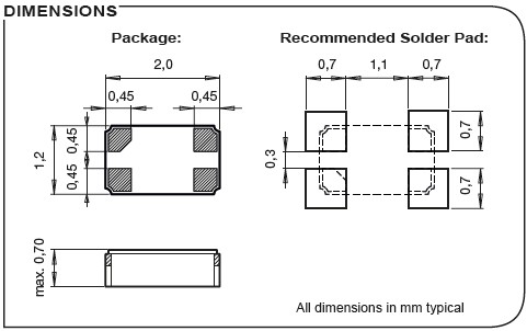 | 頻率溫度特征 | f_tem | ±30 × 10-6/-20°C ~ +70°C | 超出標準的規格請聯系我們. |