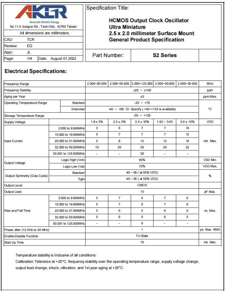 S233025T-48.000-X-R|48MHz|3.3V|AKER進(jìn)口晶振規(guī)格表