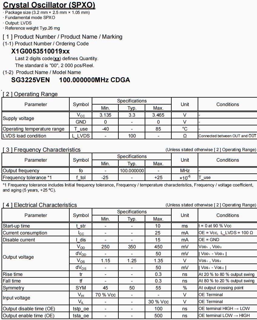 | 當前消耗量 | ICC | - | 25 | mA | OE = Vcc, L_LVDS = 100 Ω |