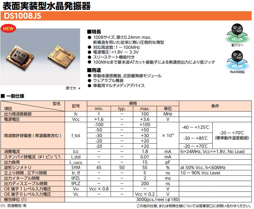 通過(guò)新設(shè)計(jì)石英芯片,安裝石英芯片和新工藝以及優(yōu)化封裝設(shè)計(jì),我們已經(jīng)實(shí)現(xiàn)了全球最小,最薄的性能,其性能等于或優(yōu)于傳統(tǒng)產(chǎn)品。我們將繼續(xù)生產(chǎn)各種小型和薄型產(chǎn)品以及高功能,高頻率,高可靠性,低功耗型等各種功能,并將有助于各種設(shè)備的小型化/高功能性。