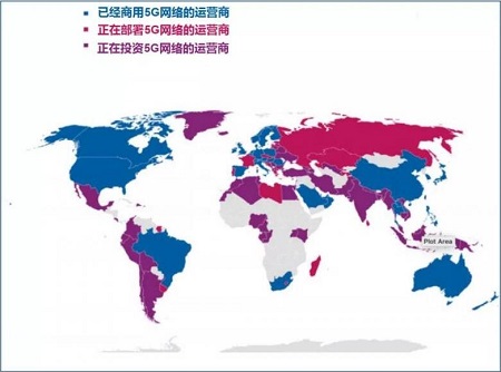紫色的區域表示正在投資5G的國家,可以看出,除了非洲之外的地區,5G基本也都正在投資中.由此也可以看出經濟基礎決定了5G建設的進程,一些技術先進,經濟發達的國家的5G都已經開始商用了,比如中國.