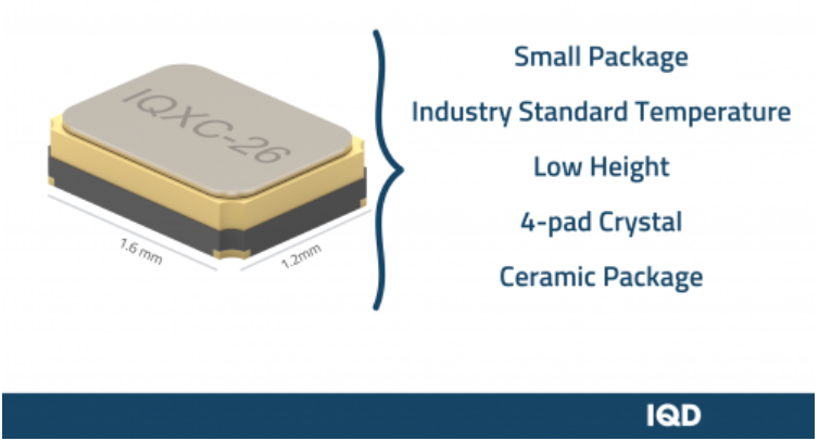 IQD的超小型晶振,IQXC-26是一個4襯墊石英晶振,被安置在一個1.6 x 1.2 x 0.4mm的陶瓷封裝,有一個密封的金屬蓋。這個蓋子是接地的,以減少電磁兼容輻射的影響。這使得IQXC-26非常適合用于所有基于無線的應用。