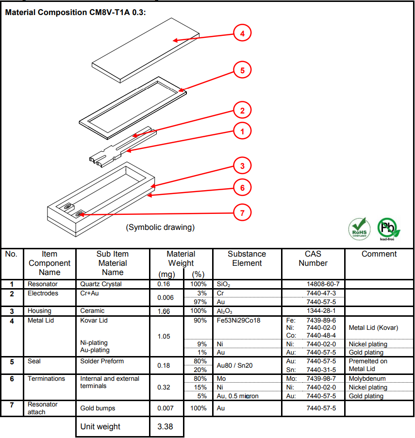 CM8V-T1A 0.3晶振材料成分聲明和環境信息