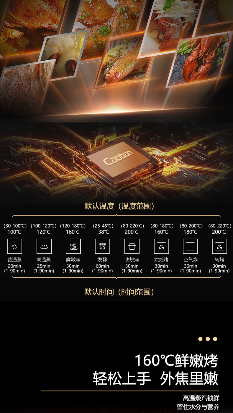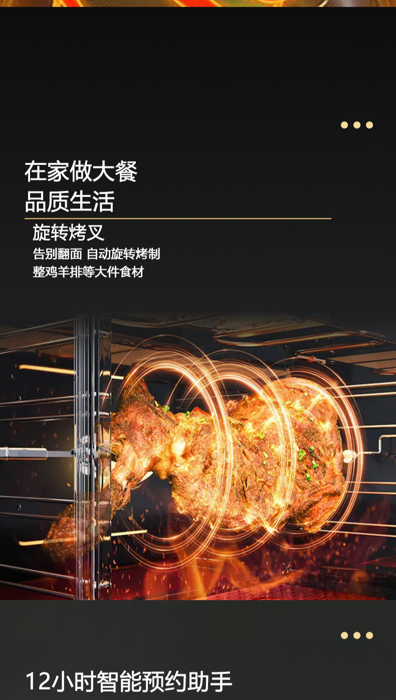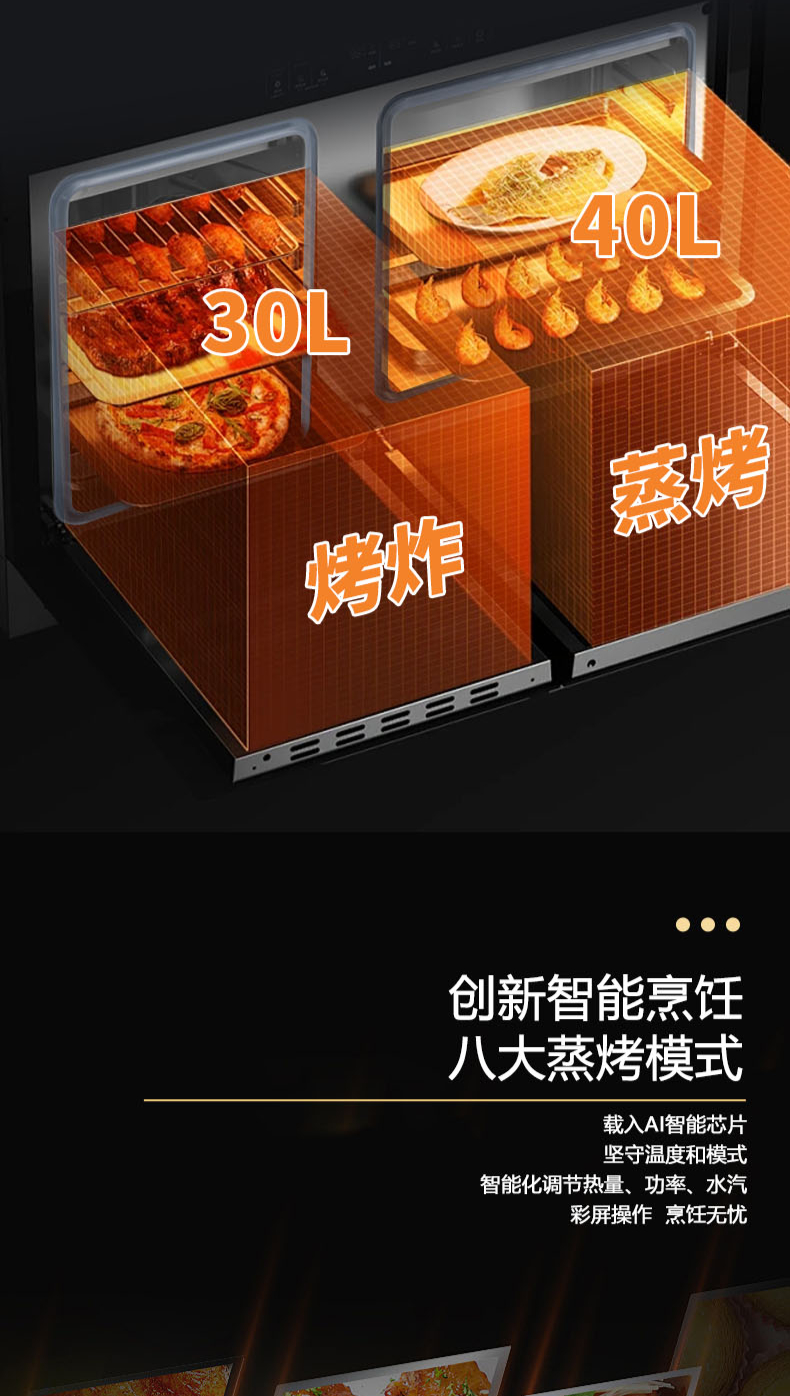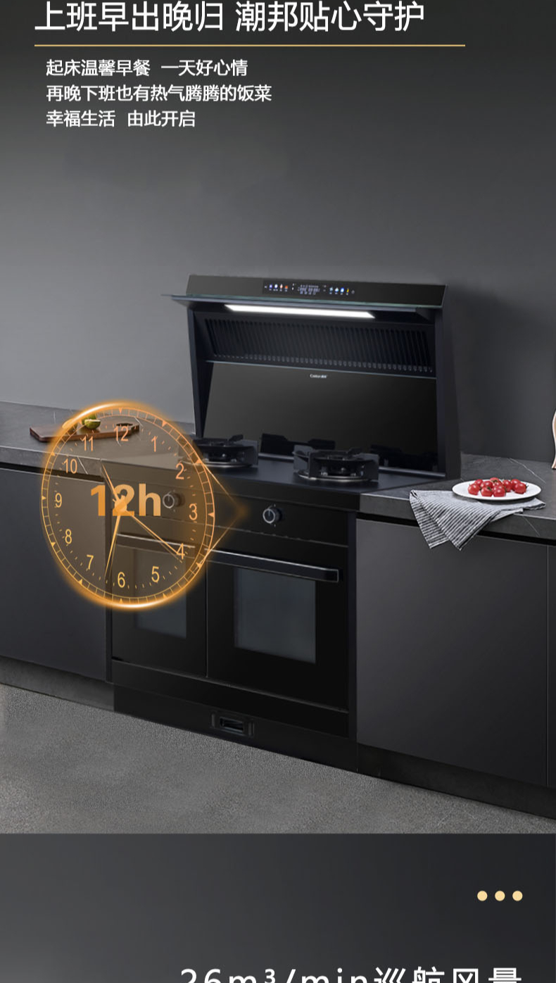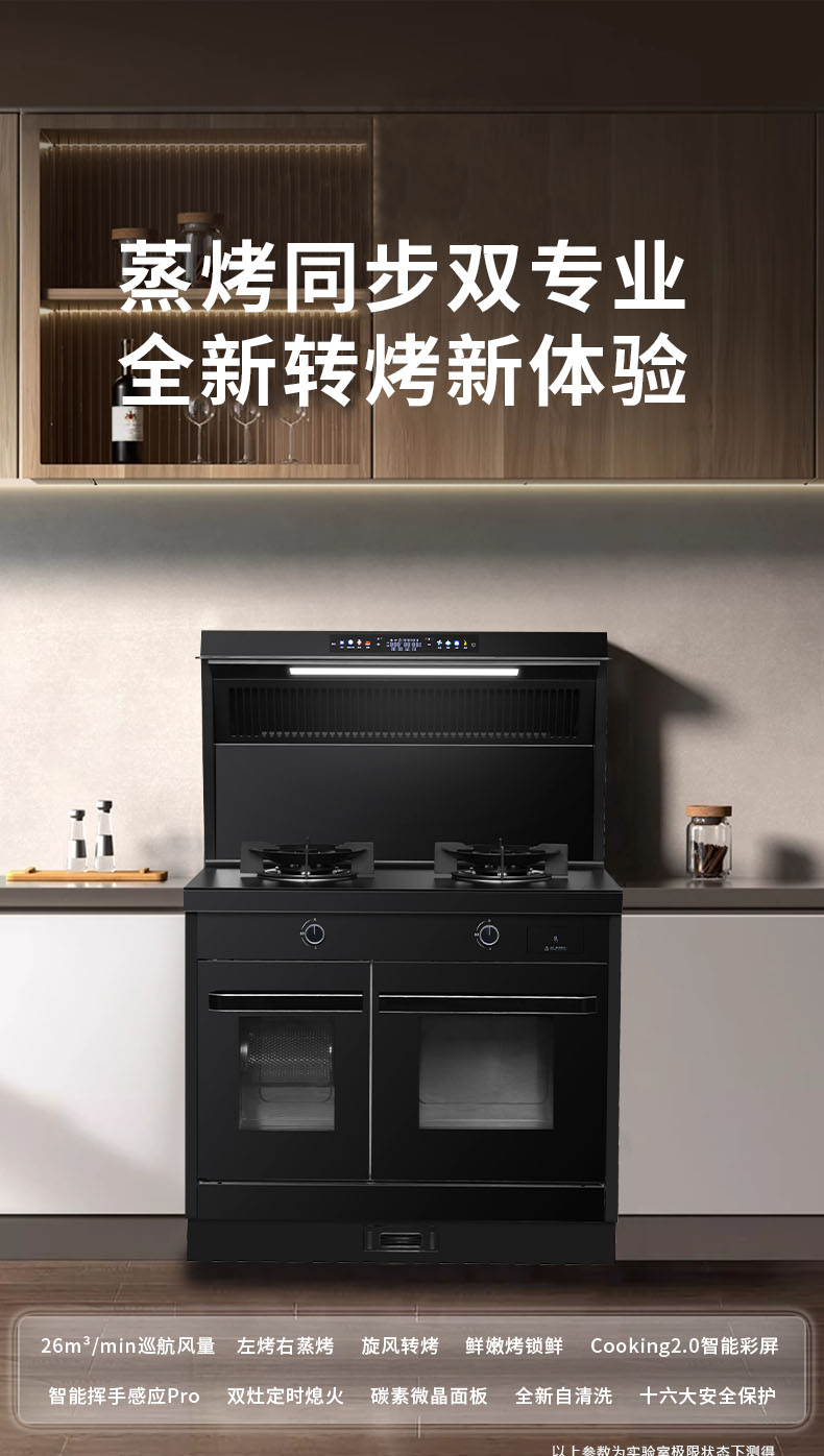 26m3每分巡航風(fēng)量,左烤右蒸烤,旋風(fēng)轉(zhuǎn)烤,智能彩屏,揮手感應(yīng),雙灶定時熄火