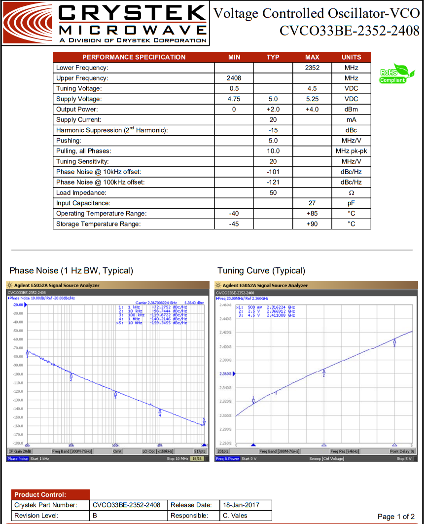 Crystek最新的CVCO33BE-2352-2408振蕩器領(lǐng)先全球