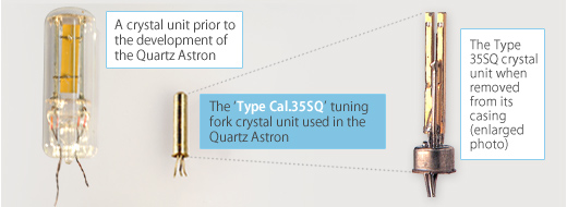 隨著第二年(1970年)Quartz Astron的全球發布,開發水晶單元的團隊得到了高層管理人員的嚴格訂單,生產出更緊湊的設計。我們的目標是提高公司手表的產品吸引力,同時開發具有卓越抗沖擊性和提高大規模生產效率的石英手表。盡管石英天文臺是一款開創性的新產品,但其工程師認為其尺寸仍然過大。石英手表被認為需要制造得更加緊湊,才能更好地被市場接受。然而,Cal.35SQ型晶體單元(直徑4.3mm x 18.5mm)的尺寸太大,無法進一步縮小石英表的尺寸,*結構。