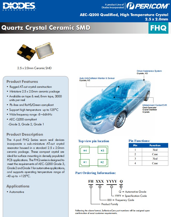 Diodes環(huán)保晶振,FHQ高性能晶振,FH1220003Z車載晶振,FH3840024Z耐高溫晶振