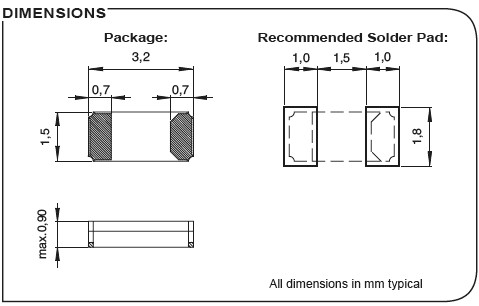 Microcrystal晶振,CC7A-T1A晶振,陶瓷兩腳貼片晶振,頻率24 – 50MHZ,封裝尺寸:3.2*1.5*0.75mm